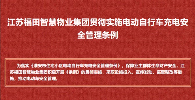 江苏福田智慧物业集团贯彻实施电动自行车充电安全管理条例