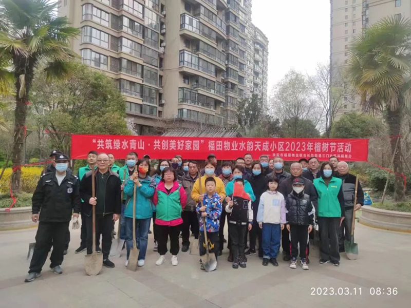 三月早春,春风拂面,一年一度的植树节即将到来。3月11日,淮安市福田物业服务发展有限公司联合长东街道三门社区在水韵天成小区共同举办了以“共筑绿水青山·共创美好家园”为主题的2023年植树节活动。