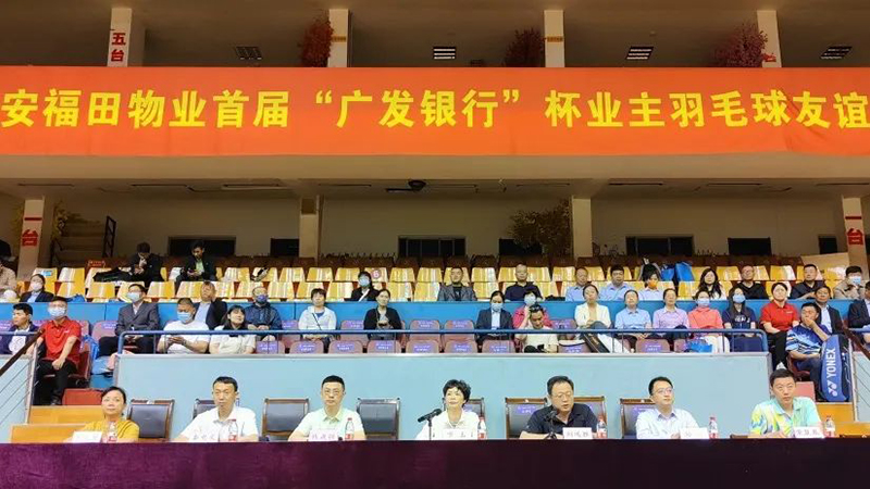 “羽你共奋进”,5月27日,淮安福田物业在淮安市体育馆隆重举行首届“广发银行”杯业主羽毛球友谊赛。